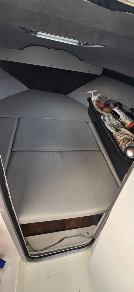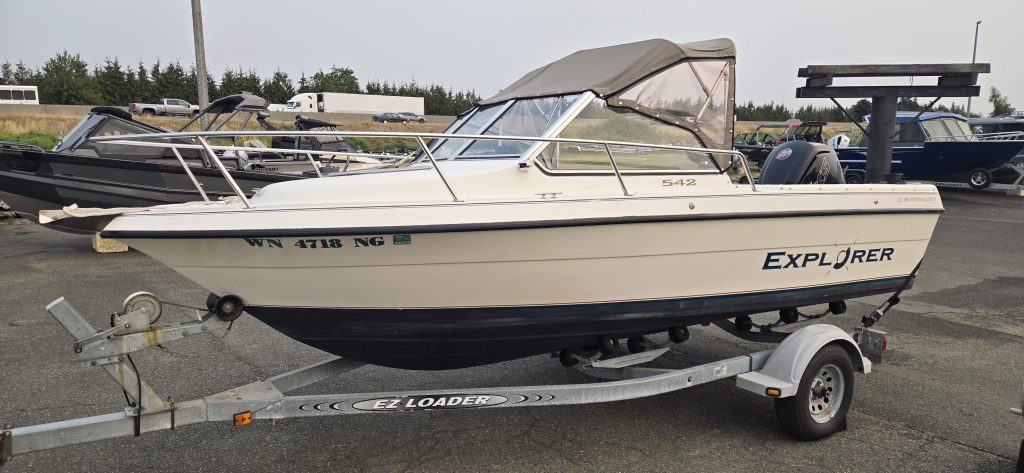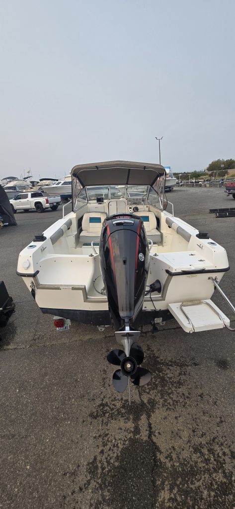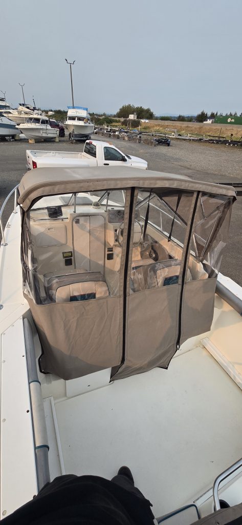 This boat has been in the same family since new. It’s in excellent shape for it’s age, and presents very well. The canvas was replaced in early 2016, to include the bimini top, drop curtain and slant back canvas. It has a full moorage cover, and a motor cover as well. The cushions in the cuddy look very clean. The Mercury ProXS 115 was installed in 2018 and has 19hrs on it. This boat is ready to hit the water!