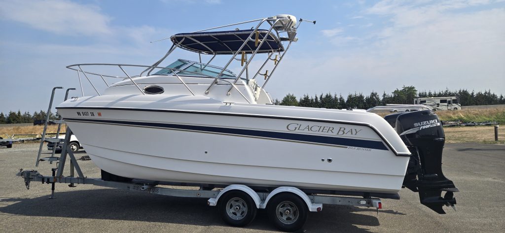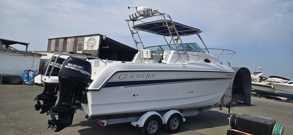 This Glacier Bay 2260 Isle Runner is a single owner, extremely clean, well maintained vessel with under 180 hours on the twin Suzuki 115’s. The interior cuddy shows extremely well. Both fish boxes have been plumbed to macerator pumps to handle offshore tuna fishing. This boat presents very well, and should be seen to be appreciated.
