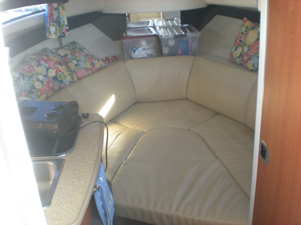 This is a great size boat for a couple or family of four to spend the weekend on. The boat comes with a sink,stove, marine head, microwave, safety equipment, and a dingy.