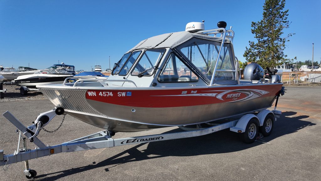 Very clean, well equipped Hewescraft water ready. Rigged with a Yamaha 200 with less than 140hrs. Yamaha 9.9 kicker motor, Garmin screen, Radar, VHF, Trim Tabs, Bluetooth sound system, Scotty electric downriggers, crab pot puller and more. Sitting on a tandem axle EZ Loader 4300 galvanized trailer.
