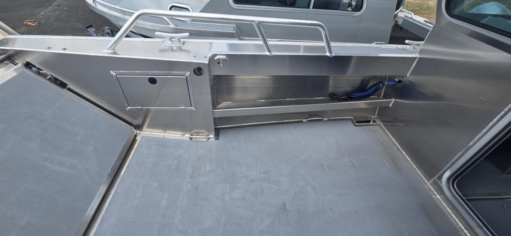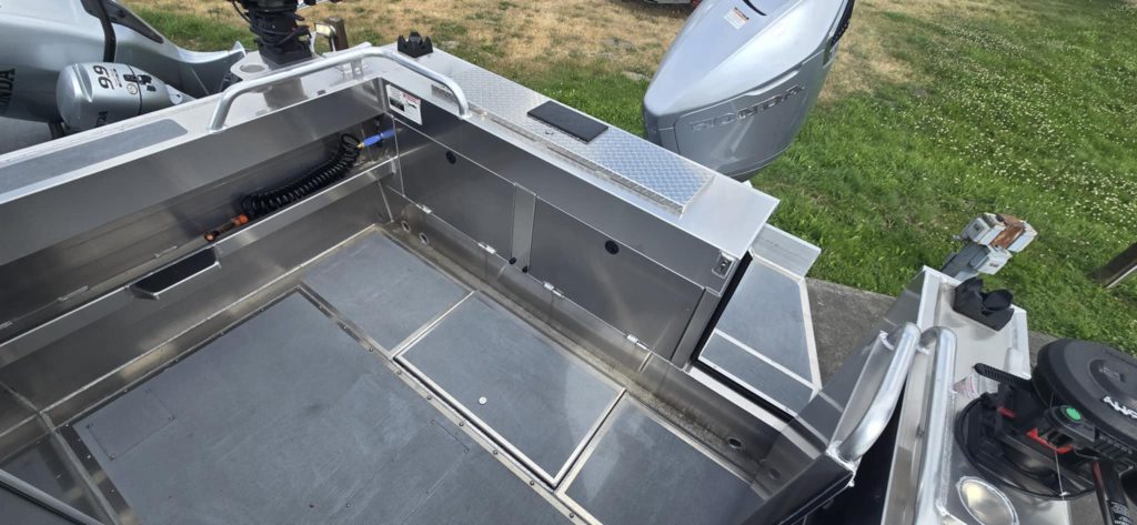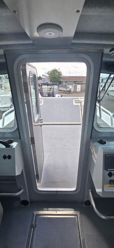 A water ready 24’0″ San Juan Landing Craft by Silver Streak. This boat is powered by a single 350hp V8 Honda that is built like a tank, and ready for the PNW adventures. Dual helm seats on back saver suspension pedestals with twin bench seats. Rear sliding door, front and aft wash down hose, Scotty 1106B Downriggers wired and ready to go.