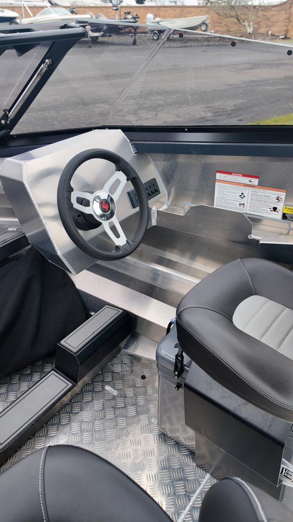 This Stabicraft 1550 Fisher is finished in Stage 1 Dark Gray paint and set up with the Offshore Package, delivering the rugged capability and stability Stabicraft is known for in a compact, highly capable platform. The plate deck floor provides solid footing throughout, while the Fisher layout offers a clean, functional cockpit well suited for serious fishing in Northwest waters.