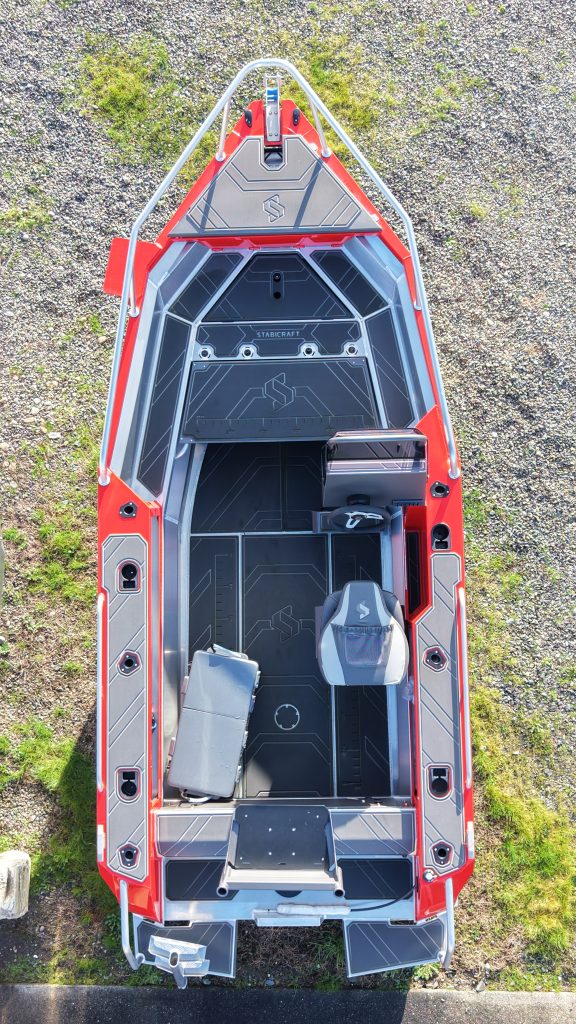 This Stabicraft 1550 Frontier is finished in Stage 1 Red paint and built as a clean, versatile platform that bridges fishing and exploration. The forward casting platform and plate deck flooring provide a solid, confidence-inspiring work surface, while the raised bow rails add security when moving around the boat. A bait board keeps the cockpit functional without clutter, preserving the Frontier’s open, adaptable layout.