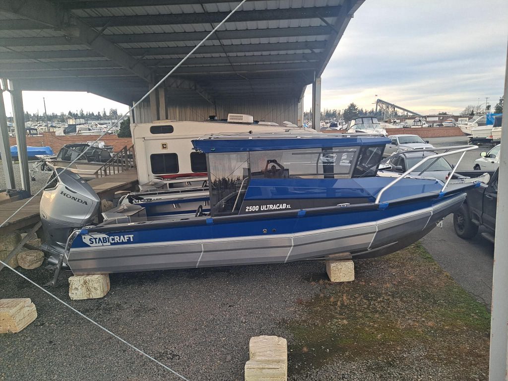 The 2026 Stabicraft 2500 UltraCab XL is finished in Stage One Dark Blue and configured as a capable offshore and coastal fishing platform. Built on Stabicraft’s proven aluminum pontoon hull, the 2500 UCXL offers high static stability, predictable handling, and a dry, controlled ride in open-water conditions. The UltraCab XL provides a fully enclosed helm with extended interior space for crew comfort, electronics, and gear storage, making it well suited for long runs and variable weather.