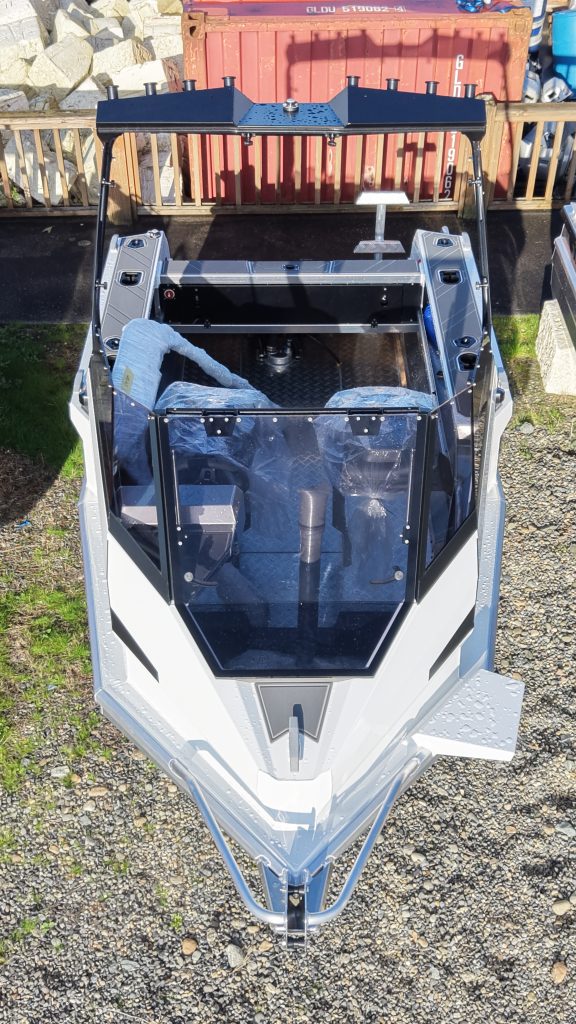 This Stabicraft 1550 Fisher Offshore in Stage 1 White is built around Stabicraft’s core philosophy of simple, strong, and functional design. The 1550 sits on Stabicraft’s fully welded chambered pontoon hull, delivering built-in buoyancy that provides a genuine safety advantage and exceptional stability for its size. This hull design allows the boat to feel planted and predictable on the water, giving anglers confidence well beyond what is typically expected from a 15-foot platform. The plate deck floor reinforces the boat’s tough, work-ready nature, creating a solid foundation underfoot.